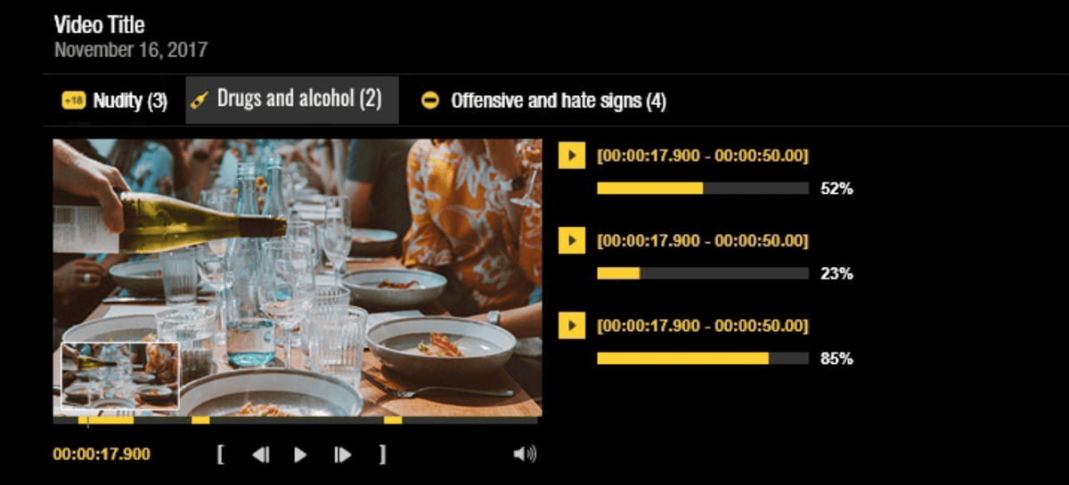 KWIKintelligence has launched a new video AI Moderation tool. The new artificial intelligence moderation tool analyzes videos and detects non-compliant scenes based on the following criteria: